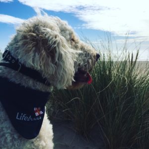 We have named Ralph 'lifeboat dog'. On his daily walks he jumps up the prom wall and looks over and out to sea to ensure all are safe and shore watches from the sand dunes.